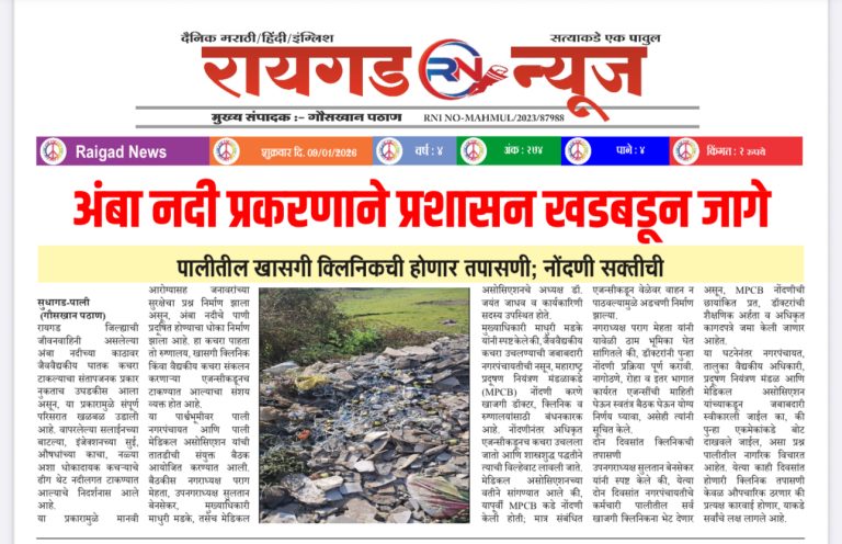 सुधागड-पाली (गौसखान पठाण) सुधागड तालुक्यातील जांभूळपाडा येथील ‘निर्वाणा अलाईव्ह’ येथे भारतीय जनता पार्टी, राष्ट्रवादी काँग्रेस…